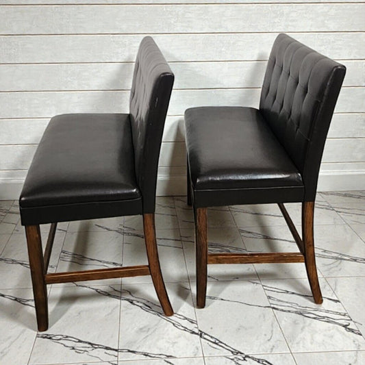 8020-8021 Contemporary Espresso Faux Leather Button-Tufted Counter Stool