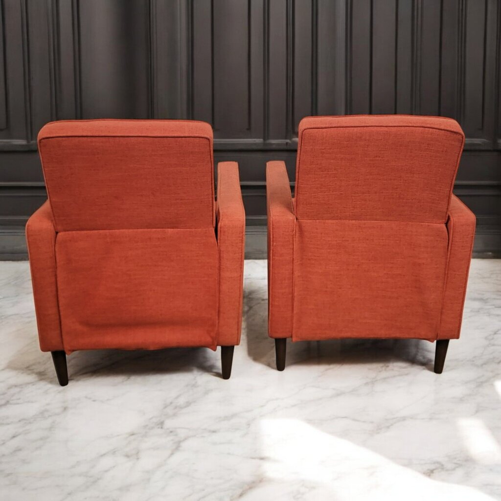7619-7620 Mid Century Orange Tweed Recliner Chair