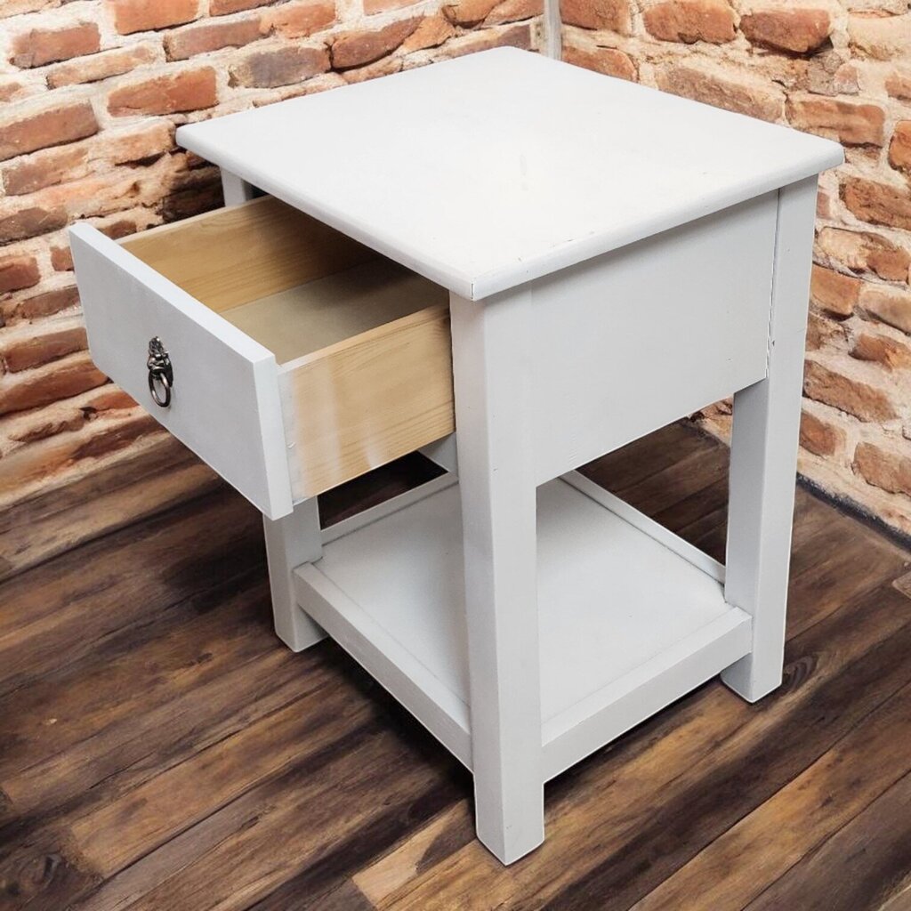 7745 White Wood Nightstand with Drawer